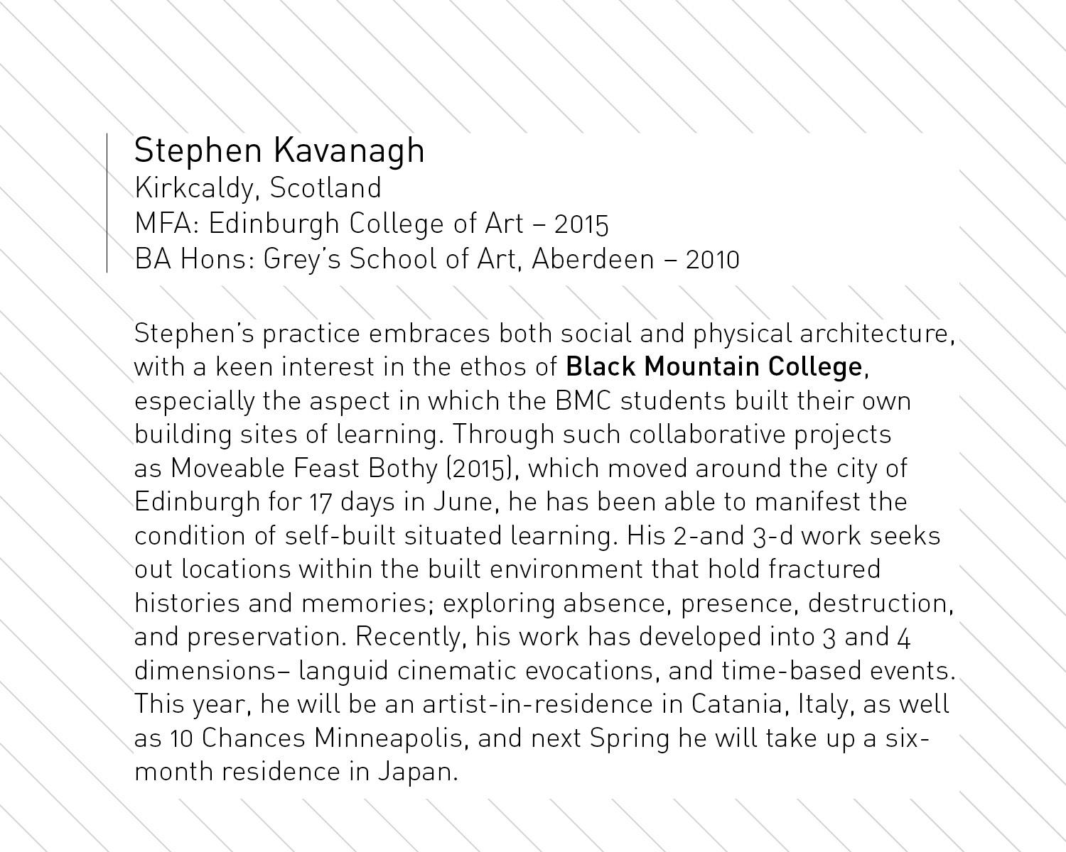 In July of 2016, as my second year was coming to its end, I ran an action research project called LIVE FEED at The Number Shop in Edinburgh. This comprised a 36-hour continuous live video feed to the locales in which the 10X residents from the summer before were presently situated at that time, and streamed live to the street on Pleasance Road in Edinburgh. Almost a year to the date of our initial kick-off to 10X, at which time the seven of us had come together in Edinburgh and caravanned to Gifford, from USA, Zurich, London, and Edinburgh, we reconvened through Skype to livestream one Place to another.