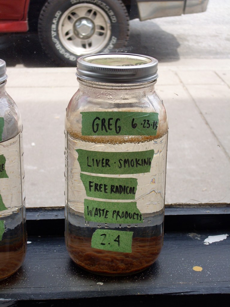 Jess Hirsch explores electronic toxic removal as portraiture. By the end, each resident had a personalized jar collected and categorized along the inside front window of 10x HQ storefront.
